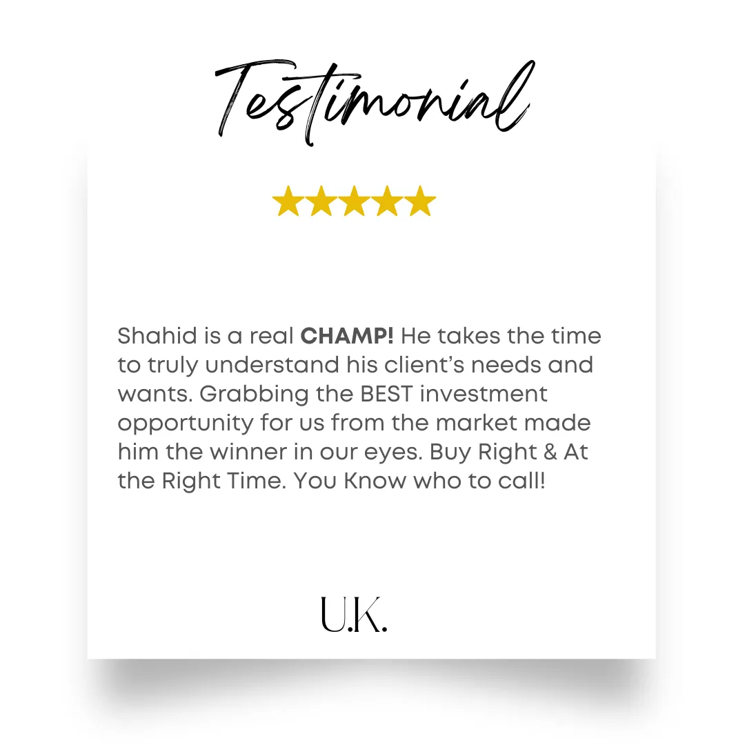 Shahid & his Team love to help investors. We truly believe in a No-Pressure approach while guiding our client’s step by